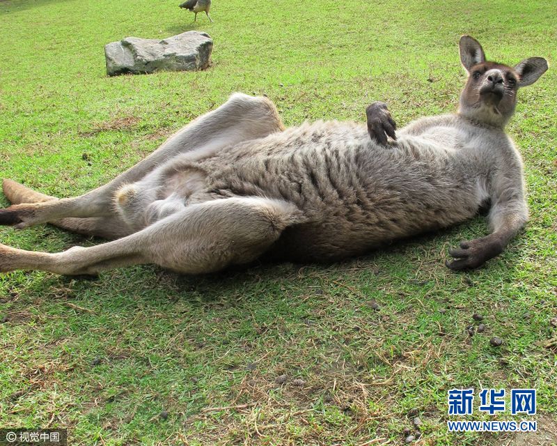 2013年8月20日消息,近日澳洲旅游局日前在官方社交网络上张贴了一张袋鼠的照片,这只袋鼠懒洋洋地仰躺在草地上,十分可爱。Featherdale Wildlife Park/Exclsuivepix/视觉中国