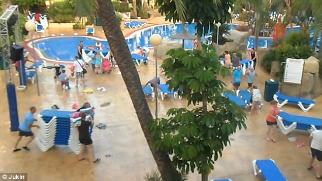 西班牙一酒店泳池遭疯狂抢座 场面混乱堪比大战(图)