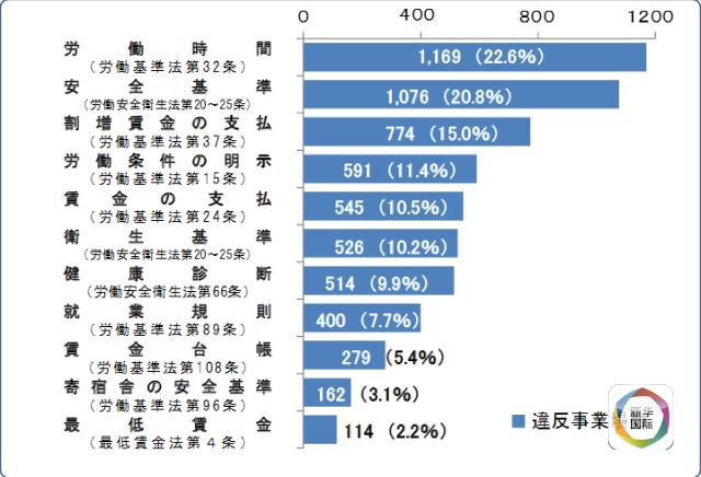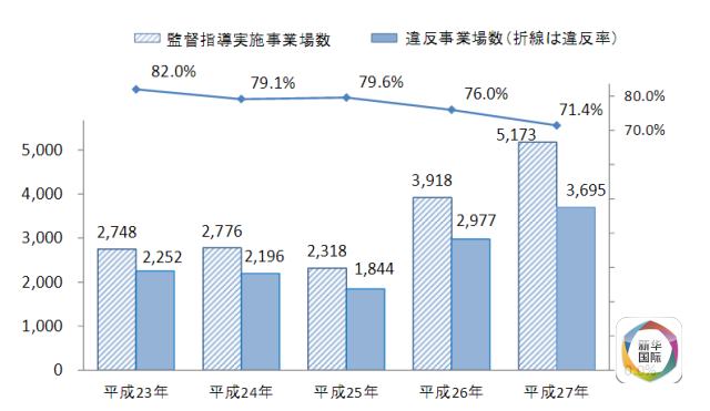 这项2015年度监督调查报告由日本全国劳动局、劳动基准监督局等部门发起,对5173家企业展开调查,最终认定其中3695家企业违反劳动标准关系法,占总数71.4%。