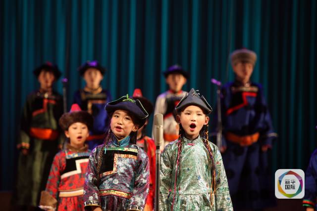 图为8月18日,五彩呼伦贝尔合唱团的小演员在蒙古国乌兰巴托中央文化宫演出。(新华社记者郑闯摄)
