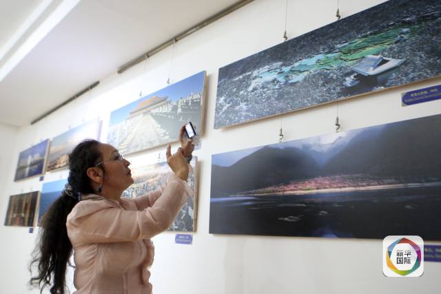 图为8月18日,观众在蒙古国乌兰巴托国家美术馆欣赏“美丽中国”图片展。(新华社记者郑闯摄)