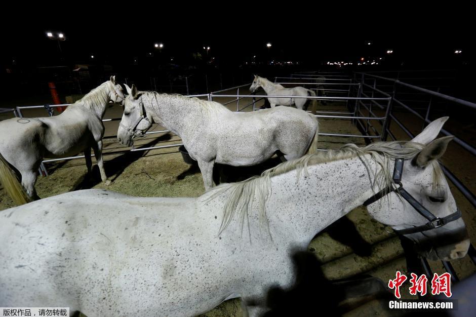 当地时间2016年8月18日,美国加州。加州南部圣伯纳迪奥县境内16日上午突发严重山火,火势迅速蔓延,目前过火面积已超过3万英亩(约合122平方公里)。尽管700余名消防人员和10余架灭火飞机昼夜扑救,但受强风和连日高温干旱影响,山火面临失控风险。图为一些得救的马被安置在临时避难所中。