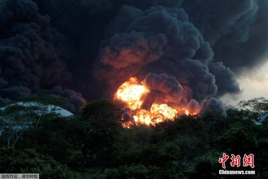 尼日利亚港口燃油贮存库起火爆炸 火团腾空