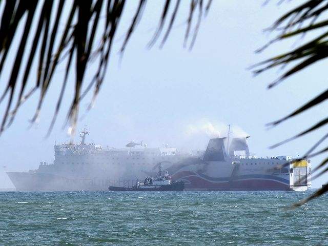 渡轮冒着烟。(图片来源:新华/美联)