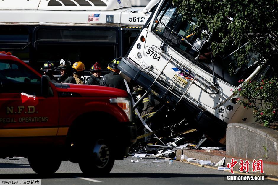美国新泽西州纽瓦克两大巴相撞 事故现场被封锁(高清组图)