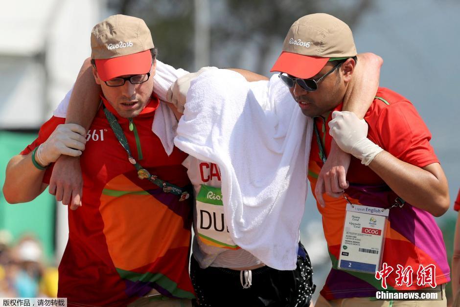 当地时间8月19日,里约奥运男子50公里竞走决赛结束后,运动员们瘫倒一片。这个堪称奥运最艰苦项目的赛事,让很多运动员尝尽苦头,甚至还有选手在比赛中途就直接放弃。图为加拿大选手Evan Dunfee在赛后被工作人员搀扶着前进。