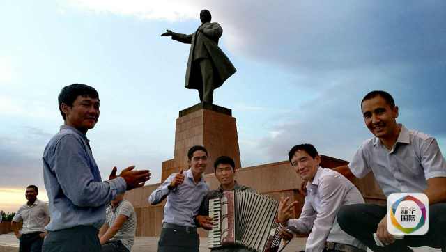 奥什市广场上的吉尔吉斯斯坦青年们。新华社发(刘文沛摄)