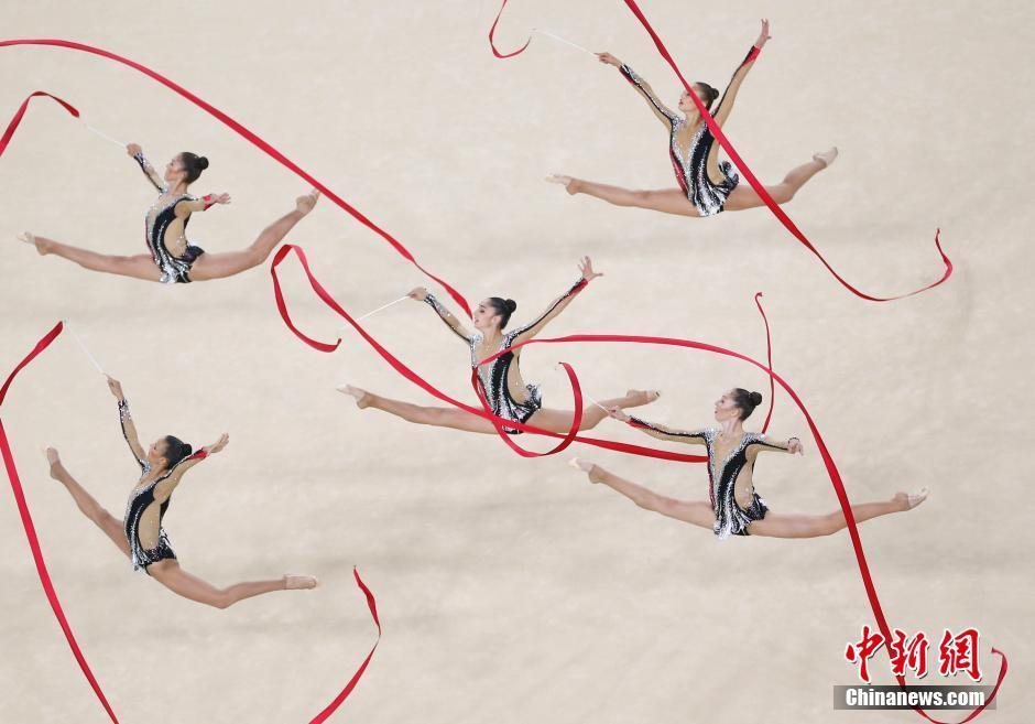 当地时间8月21日,2016里约奥运会艺术体操集体全能决赛在里约奥林匹克体育馆进行。图为以色列队在进行比赛。 中新网记者 盛佳鹏 摄