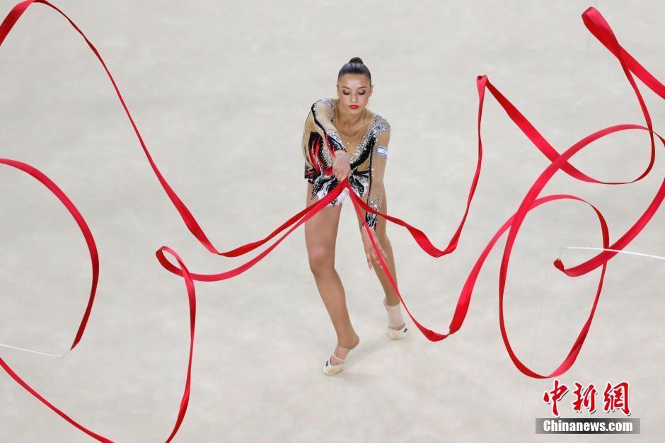 当地时间8月21日,2016里约奥运会艺术体操集体全能决赛在里约奥林匹克体育馆进行。图为以色列队在进行比赛。 中新网记者 盛佳鹏 摄