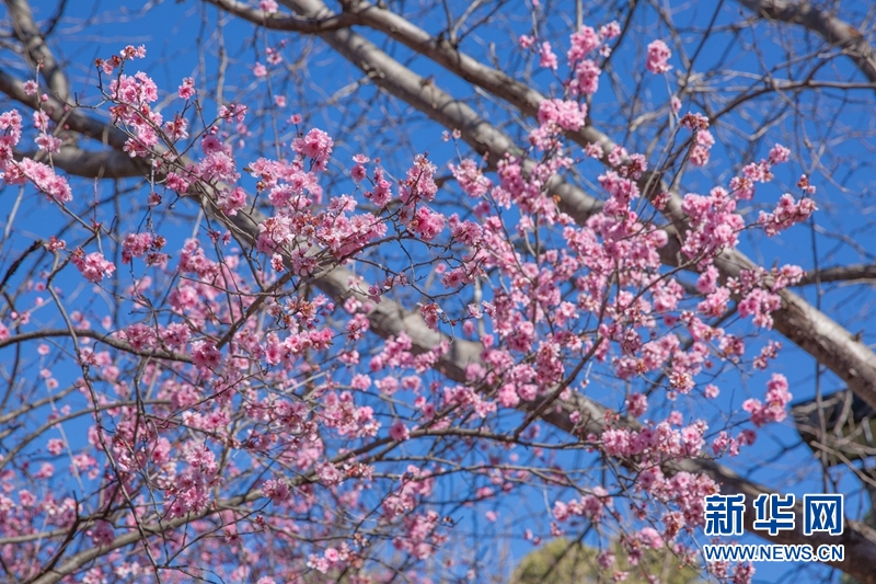 8月21日,澳大利亚悉尼奥本植物园内盛开的樱花。