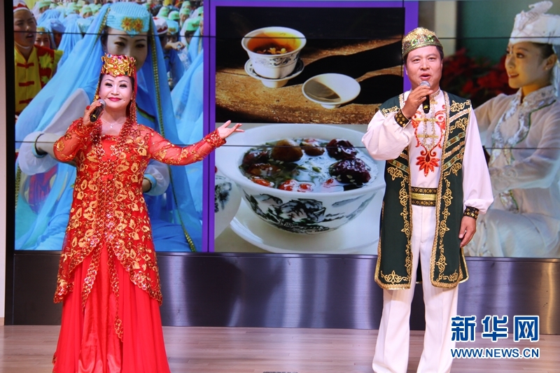 8月19日,在驻韩中国文化中心举办的“风从东方来”中国民歌体验交流活动上,詹亚军与何涛合唱回族民歌《阿妈的盖碗茶