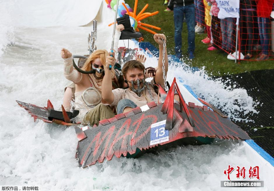 俄民众参加泡沫版“激流勇进” 各式奇葩皮艇吸睛(组图)