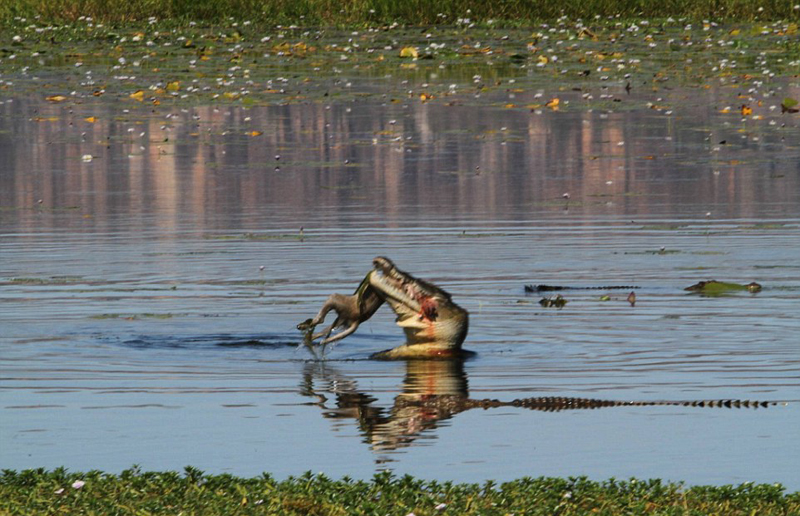 惊险一幕!澳大利亚鳄鱼30秒吞食袋鼠(图)