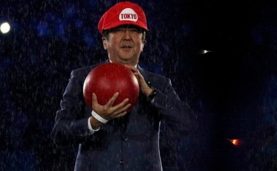 在视频末尾,安倍变身为日本任天堂公司的经典游戏《超级马里奥兄弟》(又称《超级玛丽》)中的主人公马里奥,通过一条大管道从东京直抵里约。与此同时,在里约热内卢马拉卡纳体育场中央也升起一个类似管道口的装置,安倍本人则在那里现身。