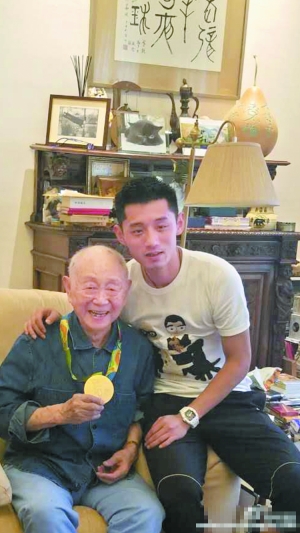 张继科(右)与黄永玉大师“分享”金牌。