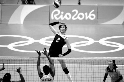 8月16日,里约奥运会女排1/4决赛,中国3比2胜巴西,朱婷在比赛中扣球。图/东方IC