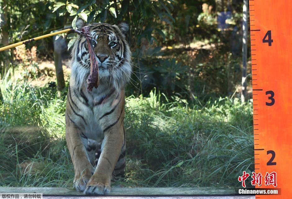 当地时间2016年8月24日,英国伦敦,伦敦动物园为苏门答腊虎测量身高体重。伦敦动物园内共生活着17000只动物,此次测量活动共计花费数小时,全部数据将记录到动物信息管理系统。