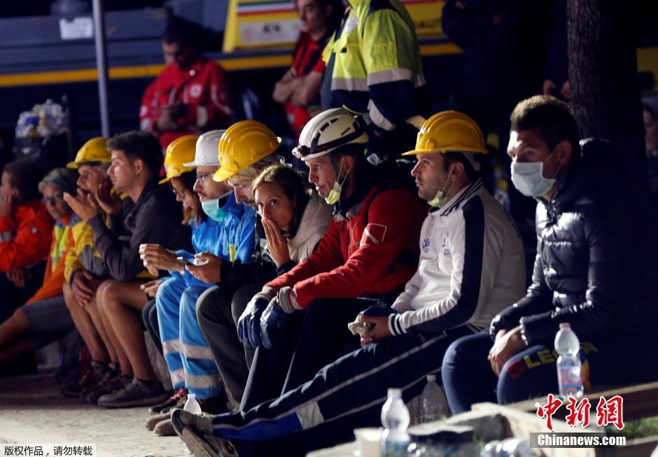 著名古城阿马特里切是重灾区之一,大量建筑物倒塌,有居民被困瓦砾下,市长皮罗齐形容四分之三个阿马特里切已“不复存在”。有目击者更形容灾区惨况如 “但丁的地狱”(Dantes Inferno)。图为救援人员在救援现场附近休息。