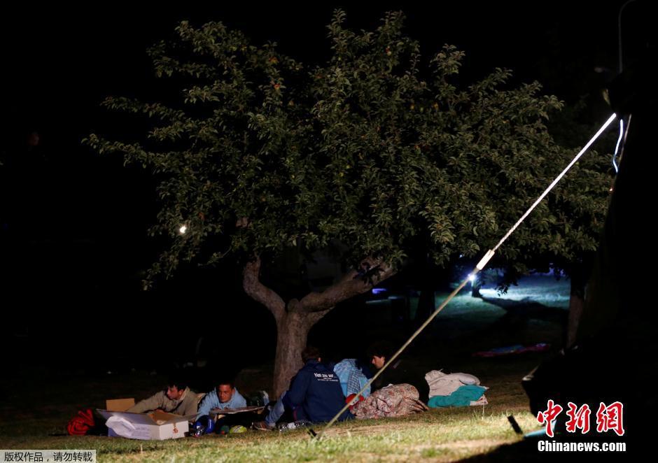不少居民在睡梦中被倒塌的房屋活埋,当局天亮后出动重型机械挖掘瓦砾及搜索生还者,死亡人数也随之直线上升。图为受灾民众在树下过夜。