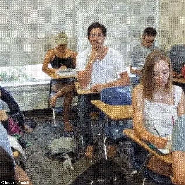 据英国《每日邮报》8月28日报道,近日,一段搞笑视频走红网络。视频中,一名男子上课时在自己的面前放了一块“逼真”的真人肖像板,远远看去像是他在聚精会神地听课,而本尊则是“大大方方”地在板背后睡觉。