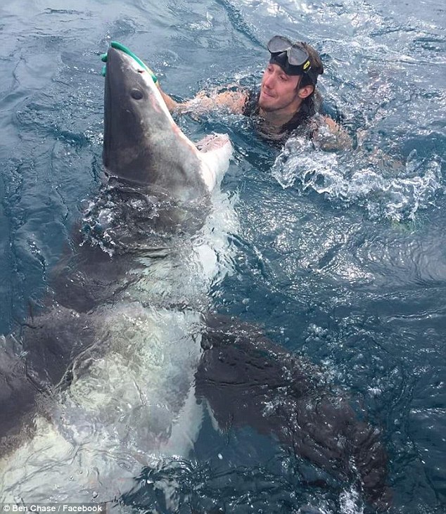 潜水员沉稳地推开鲨鱼的鼻子,其实如果操作正确是可以暂时地安抚鲨鱼的。因为鲨鱼的鼻子布满了神经末端,所以摩擦鲨鱼鼻子可以扰乱他们的感觉系统。这张照片在8月26日被上传到“脸谱”网后已经获得大量评论。其中一位用户说:“如果操作不当就会被活吞了。”