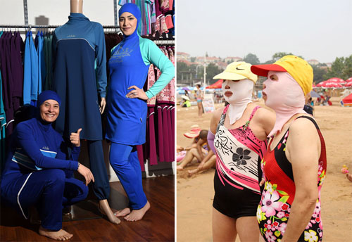 中国“脸基尼”(右)和欧洲“布基尼”(拼接图片)