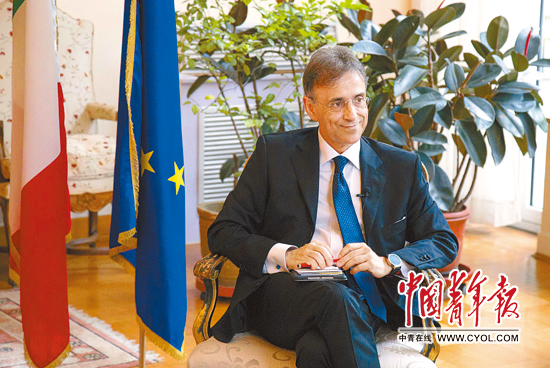 8月17日,中国青年报·中青在线记者和两名大学生记者来到这座大使官邸,官邸的主人、意大利驻华大使谢国谊(Ettore Francesco Sequi)为每个人送上了意中两国国旗的徽章,并就即将召开的G20杭州峰会的相关议题接受了采访。“我们对G20有着特别的关注。”谢国谊大使开门见山地表示。
