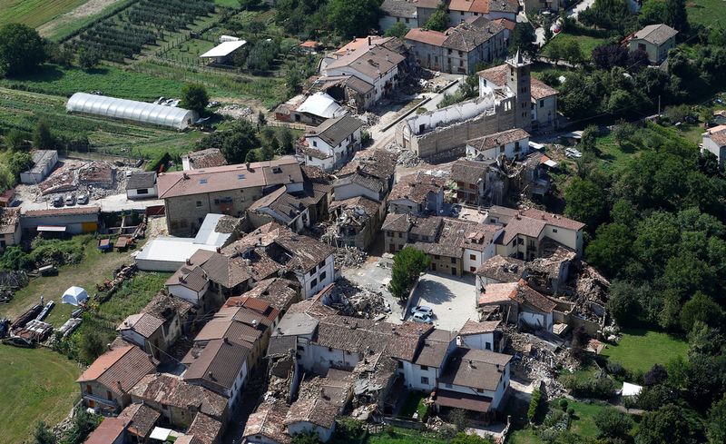 航拍意大利地震灾区 建筑坍塌满目疮痍(组图)