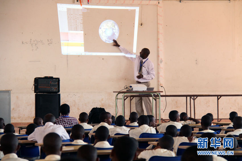9月1日,今年唯一一次日环食光临非洲。在卢旺达首都基加利市各大中小学,约1万名师生观看了这一罕见天文现象。此次,只有处于横跨中非、马达加斯加和留尼汪一处长约100公里的狭长地带的人们才能观测到完整日环食,卢旺达的师生们只能观测到日偏食。图为卢旺达大学物理学教授菲利斯·恩库达巴库拉博士在向当地学生介绍日食的形成原理。 新华网记者杨孟曦摄