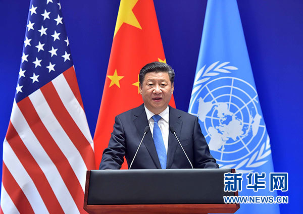习近平强调,中国是最大的发展中国家,美国是最大的发达国家,两国在气候变化领域开展了卓有成效的对话和合作。两国共同交存参加《巴黎协定》法律文书,展示了共同应对全球性问题的雄心和决心。国际社会应该以落实《巴黎协定》为契机,加倍努力,不断加强和完善全球治理体系,创新应对气候变化路径,推动《巴黎协定》早日生效和全面落实。我们要坚持共同但有区别的责任原则、公平原则、各自能力原则,按照巴黎大会授权,稳步推进后续谈判,有效应对气候变化挑战。发达国家要履行承诺,提供资金技术支持,增强发展中国家应对气候变化能力。