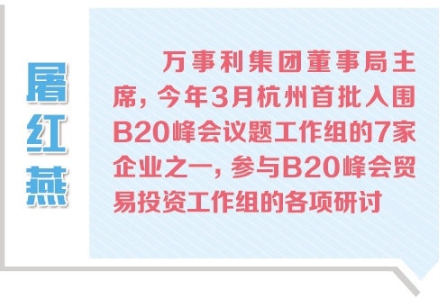 屠红燕说,中国企业在“走出去”的过程中代表的不仅是自己,更代表中国形象。此次,站在家门口的B20峰会讲台上,中国企业希望能站在全球高度参与国际规则制定,“走出去”能有更公平、便利的政策环境。