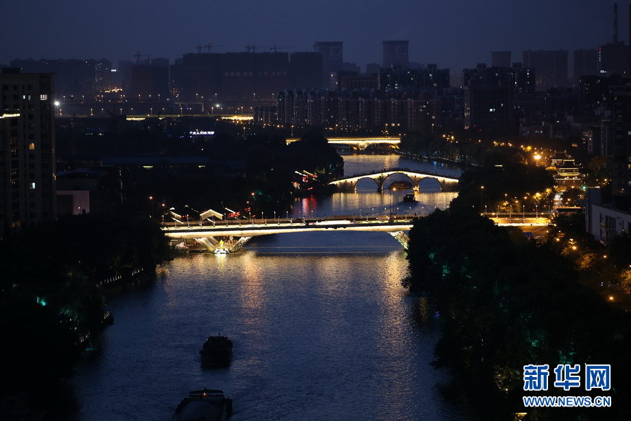 夜幕降临,华灯初上。运河两旁精心打造的亮灯工程,与河上形态各异的桥梁交相辉映,仿佛正在谱写着浪漫的诗篇。