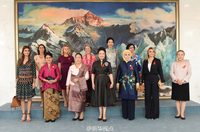 彭丽媛同G20杭州峰会外方代表团团长夫人出席“艾滋病防治宣传校园行”活动