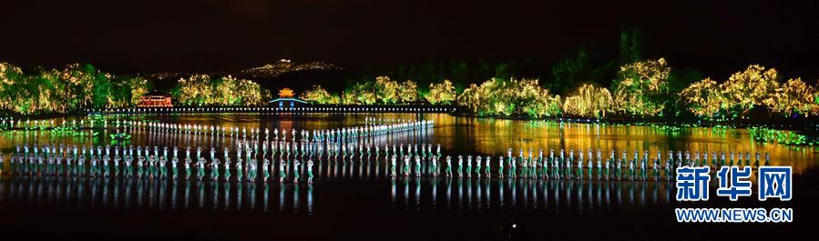 9月4日,演员在表演《采茶舞曲》。当日,出席二十国集团领导人杭州峰会的G20成员和嘉宾国领导人及有关国际组织负责人在杭州西湖景区观看《最忆是杭州》实景演出交响音乐会。新华社记者 张铎 摄
