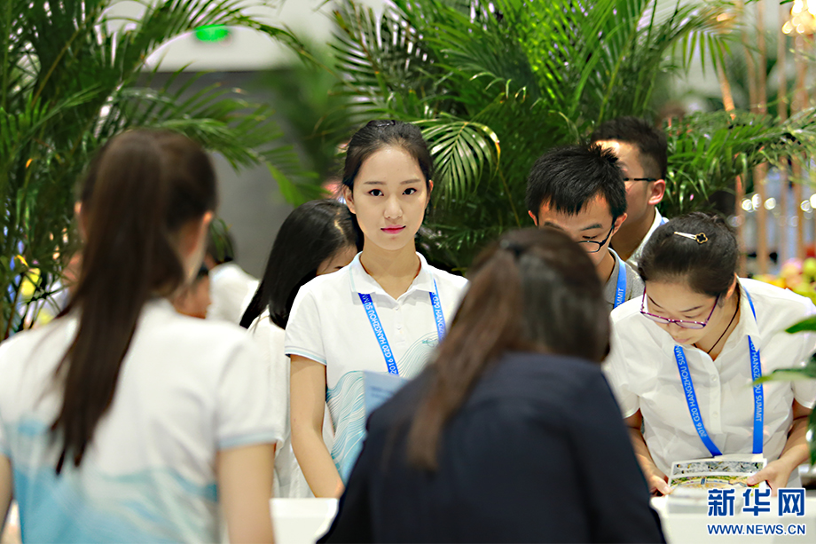 “小青荷”是此次峰会志愿者的代名词。这个名字取自宋代诗人杨万里描写杭州的诗句“接天莲叶无穷碧,映日荷花别样红”,“青荷”也音同“亲和”,他们成了G20杭州峰会新闻中心里一道亮丽的风景。新华网 祝立铭 摄
