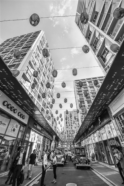 中外媒体记者在杭州跨贸小镇的跨境电商体验街区进行体验式采访。