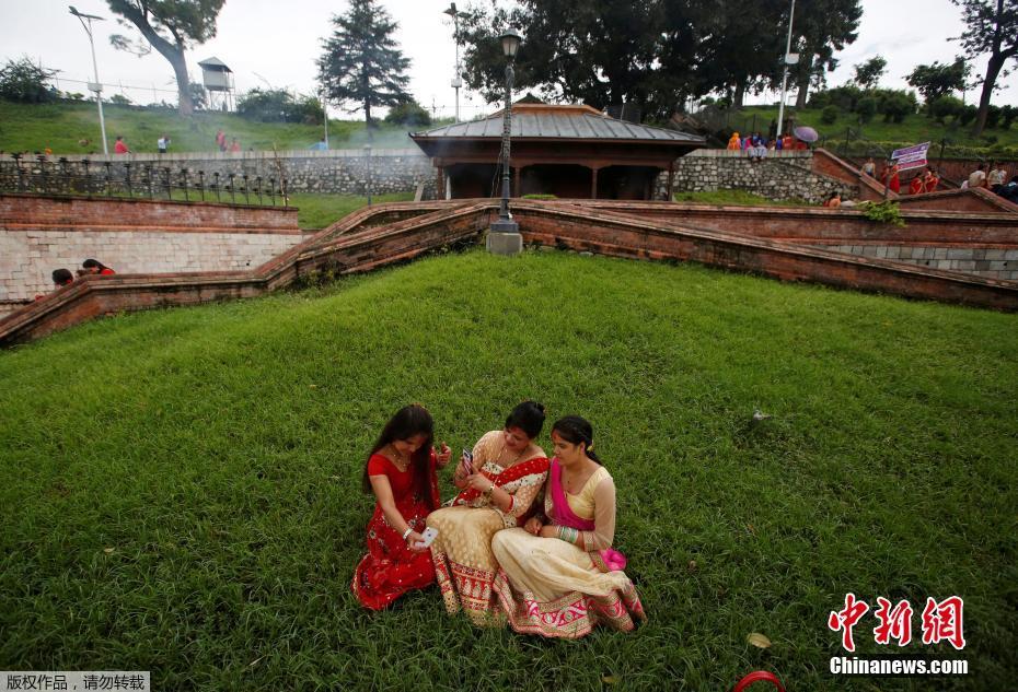 尼泊尔印度教妇女载歌载舞 庆祝提吉节(组图)