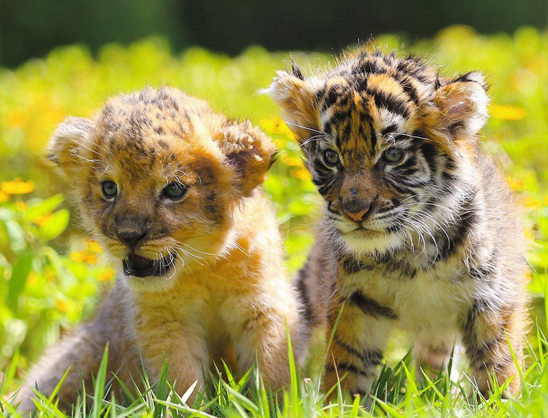 日动物园幼虎幼狮两小无猜撒娇卖萌(组图)