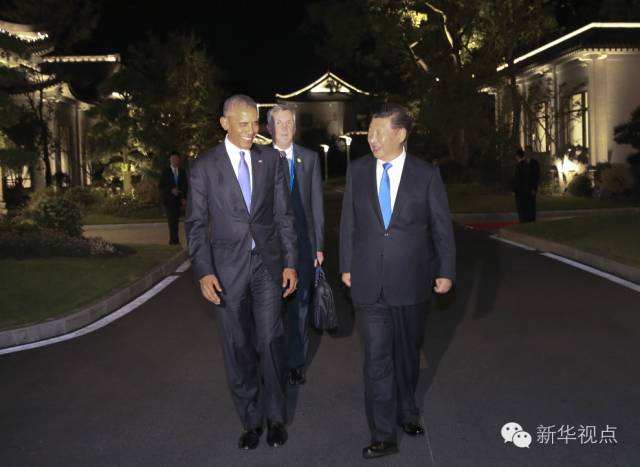 从下午5点半开始,在西湖国宾馆,习主席和奥巴马有好几场活动。