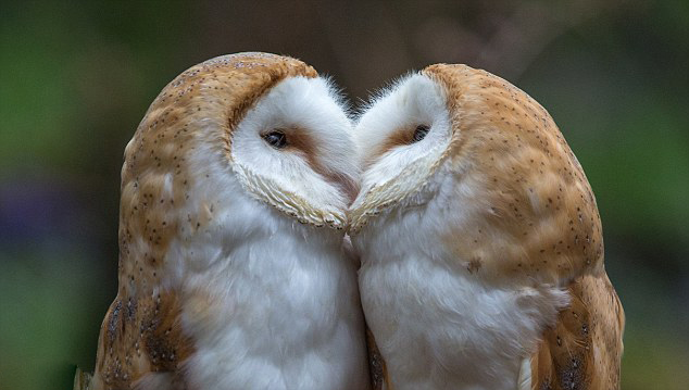 温馨!英国仓鸮姐妹依偎亲吻表达爱意(组图)