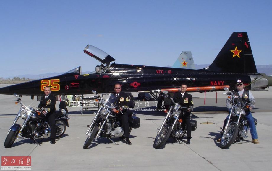 哈雷摩托与美海军“米格-28”(F-5)假想敌战机合影,看过电影《壮志凌云》的童鞋会有感触。