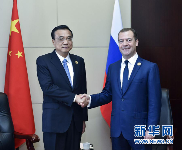 新华社万象9月8日电(记者章建华 陈二厚)国务院总理李克强当地时间8日上午在万象国家会议中心同俄罗斯总理梅德韦杰夫举行会见。两国总理一致同意继续推进中俄全面战略协作伙伴关系取得新发展,并就共同关心的双边以及国际地区问题交换意见。