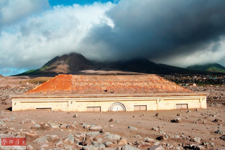 英属蒙特塞拉特岛普利茅斯法院大楼。1995年7月苏弗里埃尔火山喷法后,蒙特塞拉特首都普利茅斯完完全全地被火山灰覆盖了。随着不断的火山喷发,三分之二的居民离开这里,一半的岛屿让人类无法适应居住。理论上,普利茅斯仍是首都,尽管它成为了“幽灵小镇”。