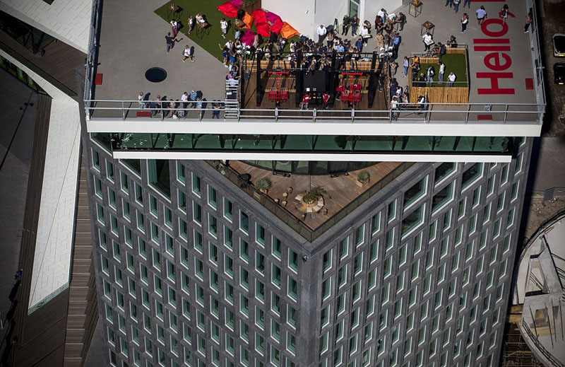 秋千“飞过天际”坐落在阿姆斯特丹前壳牌大厦百米之高的楼顶,是欧洲最高的秋千,已成为荷兰首都的明星景点之一。秋千上的游客悬浮于22层楼的高空,可以俯瞰阿姆斯特丹的美景,历史中心、红灯区和一些著名港口等皆尽收眼底。