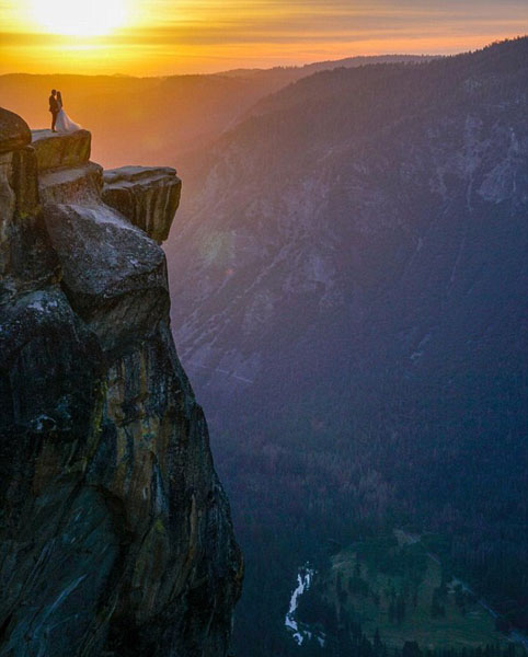3日,漫步在约塞米蒂公园中的迈克偶遇一对新婚燕尔。黄昏时分,二人在岩礁边缘相拥。迈克也沉醉其中,并举起相机,为这对佳人捕捉到了这美好的一刻。无奈实在相距甚远,他只能和他们隔山相望。