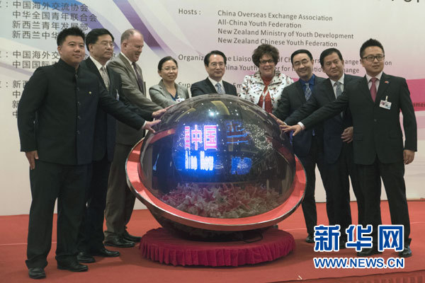 9月5日,国务院侨办副主任、中国海外交流协会副会长兼秘书长谭天星(左5)、新西兰青年事务发展部总裁罗宾·斯科特(右4)等为“第二届中新青年论坛”揭幕。 新华网 王蕙林 摄