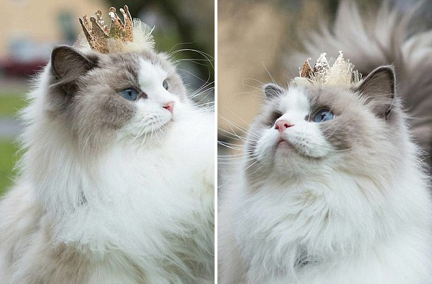 如此光彩照人、人见人爱的猫咪当然离不开主人幕后的精心照顾和打扮。它的主人艾米丽(Emily)和尼可拉斯(Niklas)直言不讳地说,“它享受着大多数皇家贵族拥有的一切,每天要干的事就是吃、睡、被娇惯。”
