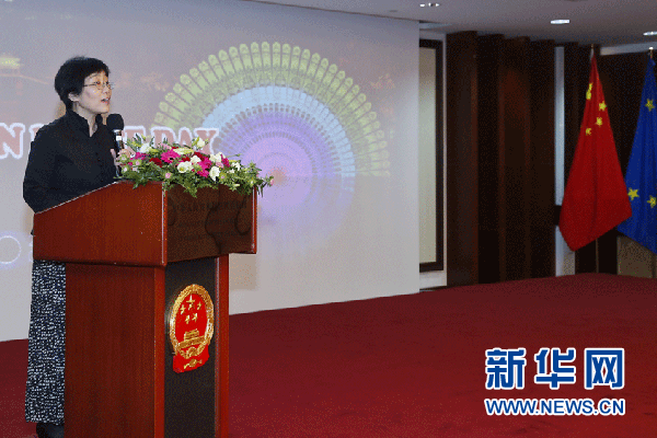 9月10日,在比利时首都布鲁塞尔,中国驻欧盟使团团长杨燕怡致辞。当日,中国驻欧盟使团举行2016年开放日活动,通过歌舞、图片、书法、美食、游戏互动等多种形式向欧洲友人和当地居民介绍中华文化和当今中国的发展。 新华社记者叶平凡摄