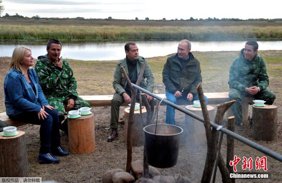 当地时间2016年9月11日,俄罗斯大诺夫哥罗德,俄罗斯总统普京与总理梅德韦杰夫一同访问当地伊尔门湖,与民众亲切交流,为统一俄罗斯党在即将到来的俄罗斯杜马选举拉票造势。