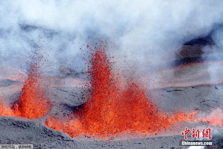 法国留尼旺岛火山喷发 熔岩迸溅场面震撼(组图)